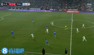 第42分钟,阿尔瓦塞特右侧角球契机,何塞·卡洛斯·拉佐主罚将球送到门前,哈维·维拉高高跃脱手球攻门笔直,阿尔瓦塞特1-0皇马。↓