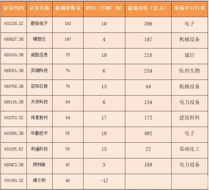 本周调研公司中,电子行业运动市值超百亿的包括沪电股份、领益智造、华勤本领、扬杰科技、芯联集成、顺络电子、奥比中光、获胜精密、龙旗科技。